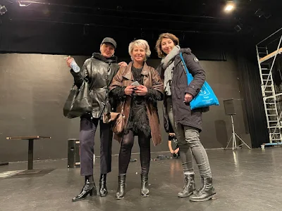 Isabelle Wéry entre Dance Divine et Maud Joiret à droite, préparatifs de la sieste littéraire. |
